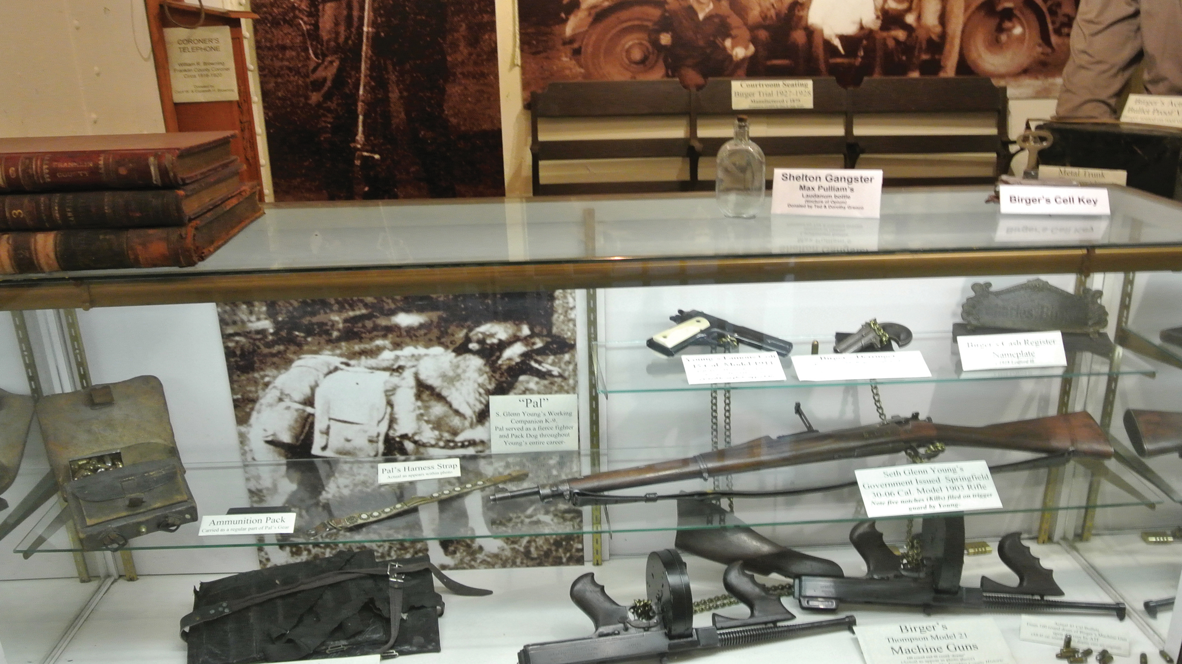 The 1905 Franklin County Jail Museum was added to the National Register of Historic Places in 1999. The displays in this amazing museum houses memorabilia from The Beatles' George Harrison's first trip to the United States to visit his sister Louise in Benton Illinois, to actor John Malkovich, basketball star Doug Collins, Civil War General John A. Logan and gangster Charlie Birger, the last convicted criminal to be hanged in Illinois. See actual jail cells used to house Charlie Birger and a replica of the noose and gallows used to hang him. .